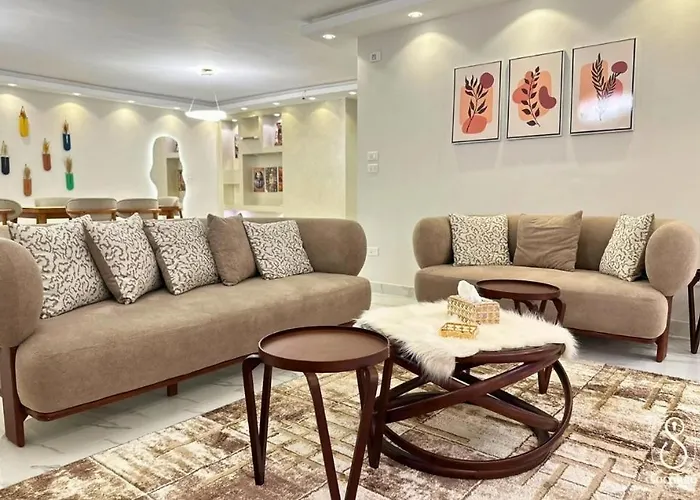 The spacious Dokki 3Br Modern Serviced Apartment For Families Cairo is located 2.4 km from Giza Zoo and 25 minutes' walk from the free - standing concrete Cairo Tower. Wi-Fi is available for guests' business or leisure needs.